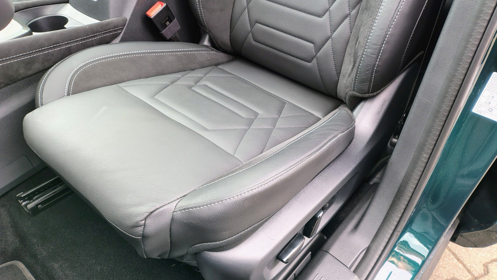 • Tapicerka skórzana z wykończeniem alcantary w kolorze czarnym